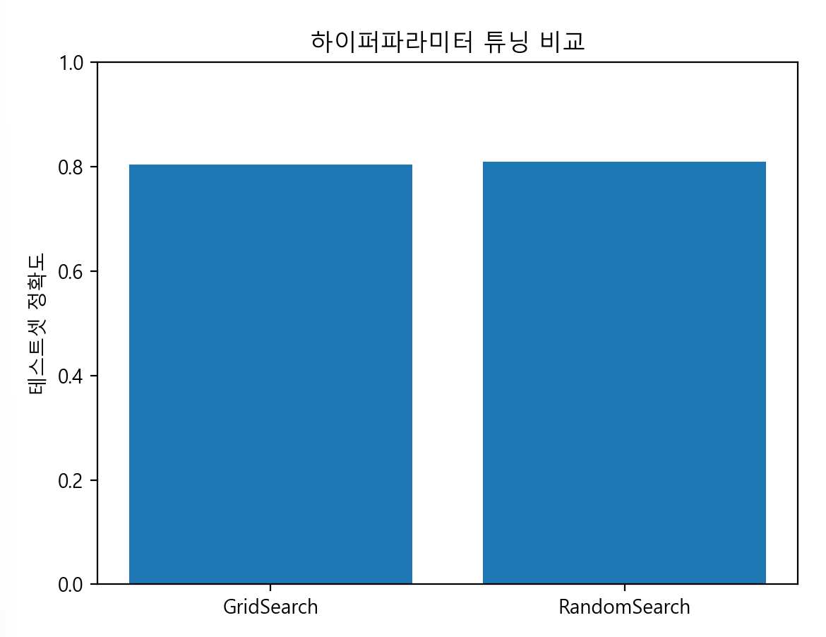 테스트에서 기본 모델(82.68%)이 GridSearch(80.45%), RandomSearch(81.01%)보다 더 높게 나옴.